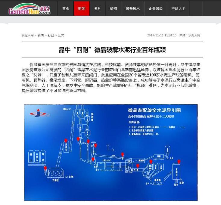 水泥人網(wǎng):晶牛“四耐”微晶破解水泥行業(yè)百年瓶頸