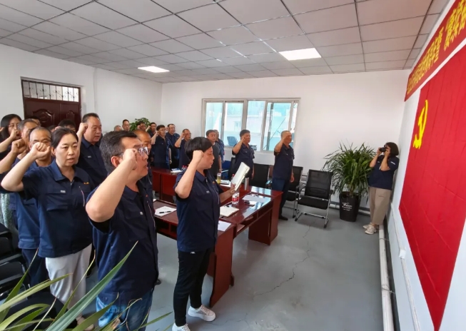 活動伊始,首先進行了新黨員入黨宣誓和老黨員重溫誓詞環節。集團黨委書記王群英同志帶領新老黨員面對黨旗莊嚴宣誓,擲地有聲的誓詞激情澎湃、久久回蕩。隨后,大家集體肅立為王長林主席默哀。宣誓后的激動和沉痛懷念之情交織在一起,提醒著全體同志要不忘入黨初心、牢記三晶使命、賡續晶牛事業。